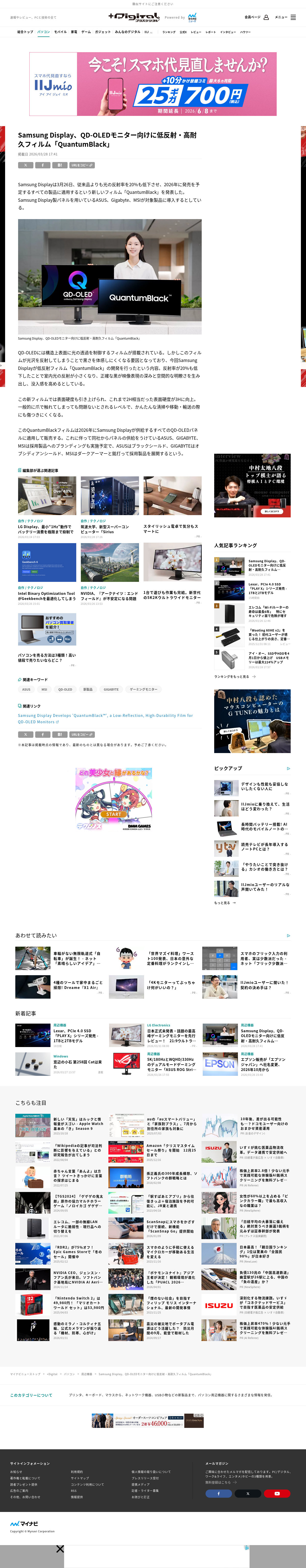Samsung Display、QD-OLEDモニター向けに低反射・高耐久フィルム「QuantumBlack」 | マイナビニュース https://news.mynavi.jp/article/20260328-4269687/ (15:14 bskyから・詳細)